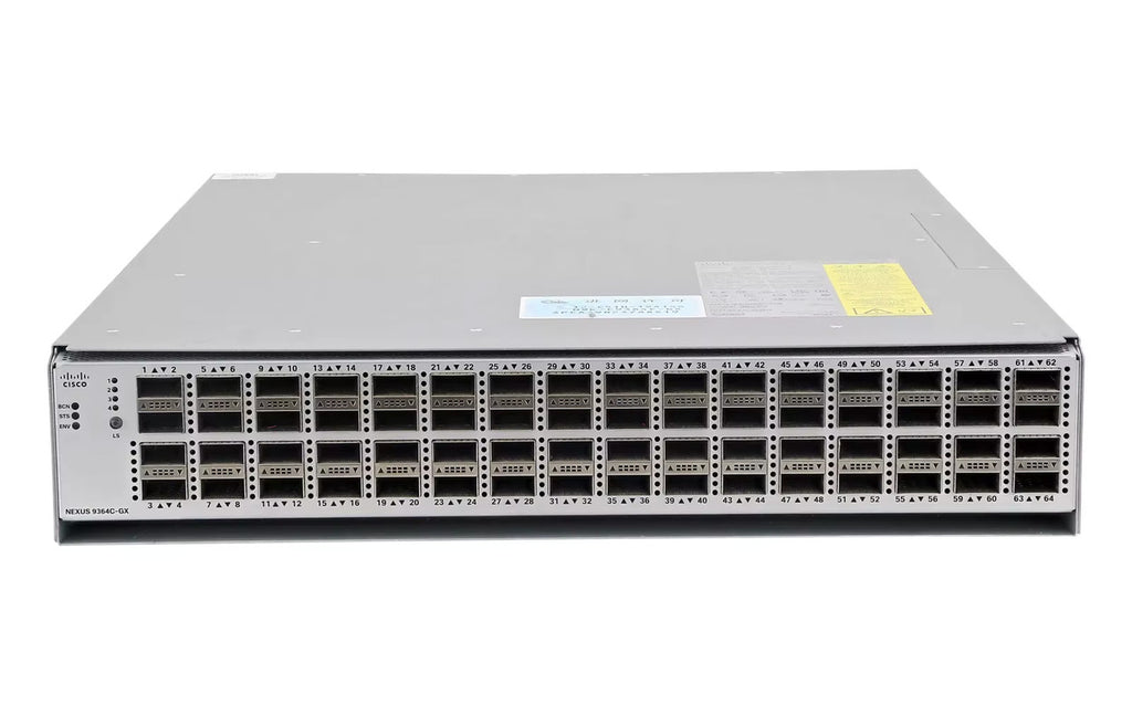 The Cisco N9K-C9364C-GX is a high-density 1RU data center switch engineered for ultra-low latency, high-performance networking in enterprise and cloud environments. Featuring 64 × 10/25G SFP+ ports and 8 × 40/100G QSFP28 uplinks, it delivers scalable, high-throughput connectivity ideal for spine-leaf architectures, virtualization, cloud-scale deployments, and high-performance computing workloads. Running on Cisco NX-OS, the switch supports advanced Layer 2 and Layer 3 routing, VXLAN, EVPN, segment routing, MPLS, and BGP, enabling flexible and automated network designs. MACsec encryption, ACLs, and control-plane protection ensure secure and reliable traffic handling, while redundant power supplies and hot-swappable fans provide continuous uptime for critical applications. With programmable APIs, streaming telemetry, and centralized management, the N9K-C9364C-GX simplifies network automation, monitoring, and orchestration. Designed for modern data centers, enterprise cores, and cloud infrastructure, it combines speed, reliability, security, and future-proof scalability, making it a robust solution for demanding network environments.
